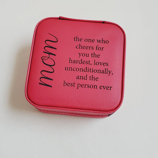 Mom Engraved Vegan Leather Travel Jewelry Box